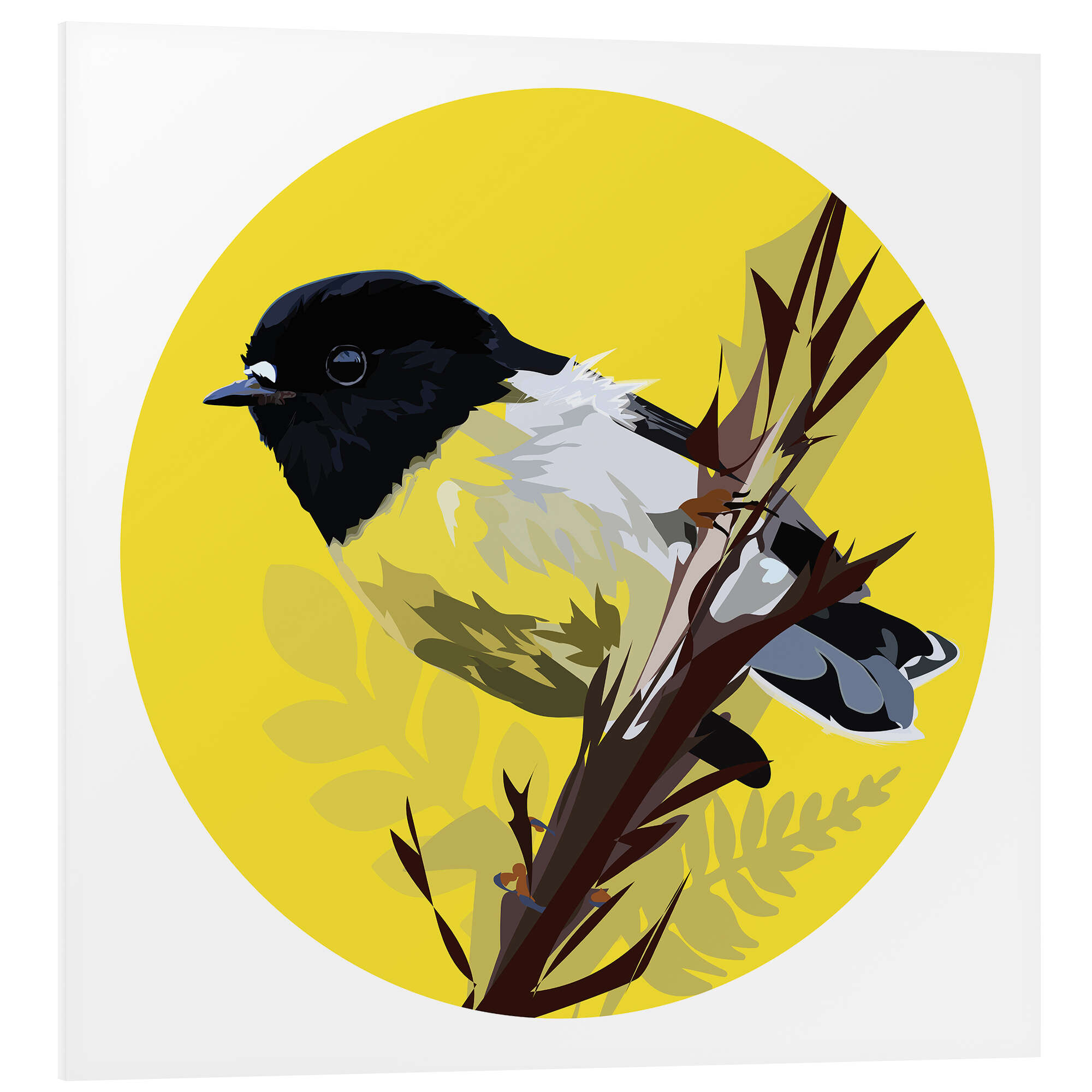 Posterlounge   Wandbilder   Tiere   Vögel   Anna McKay   Hartschaumbild Meise auf gelbem Kreis