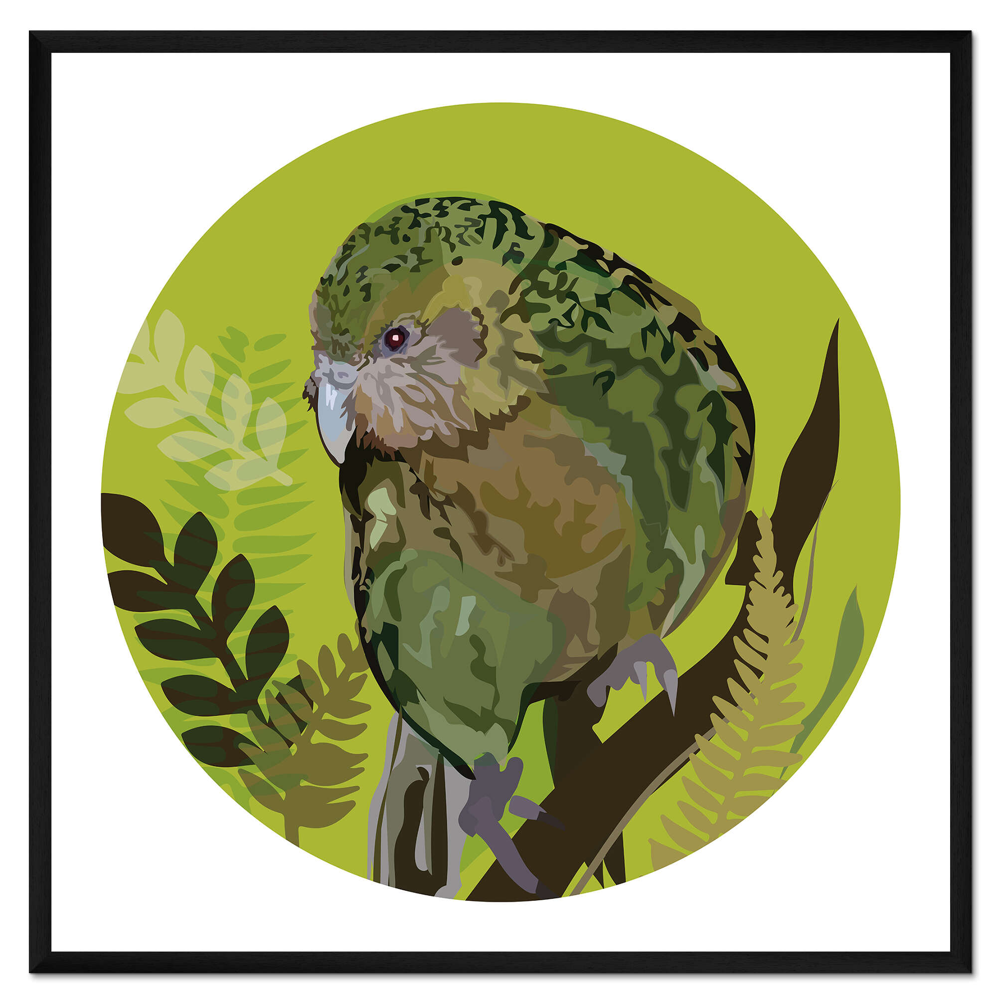 Posterlounge   Wandbilder   Grün   Anna McKay   Gerahmter Kunstdruck Kakapo-Papagei auf hellgrünem Kreis