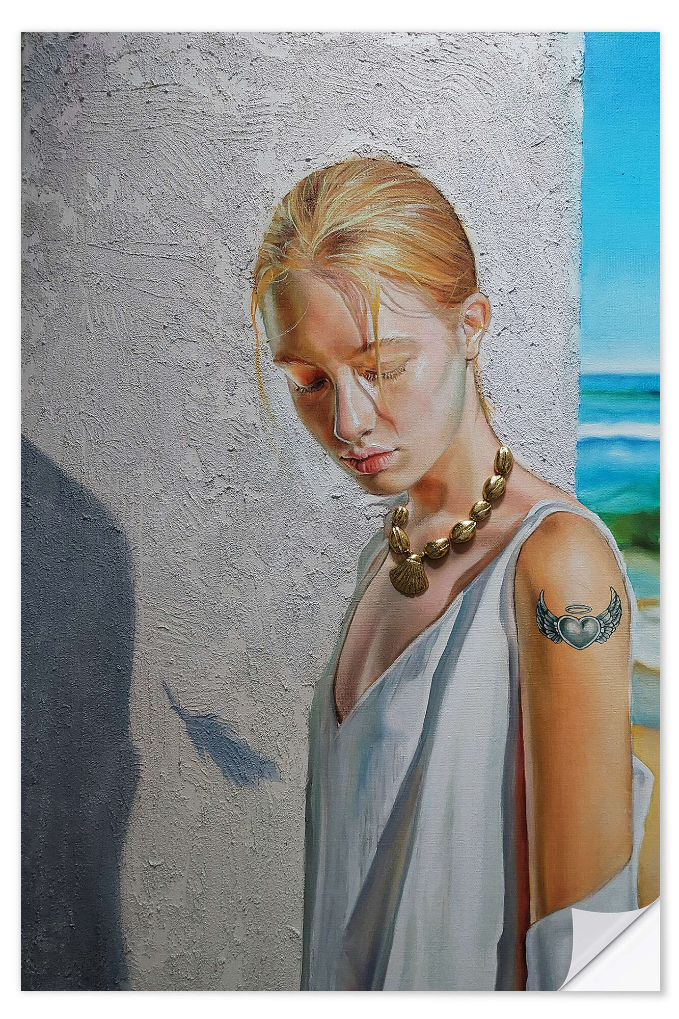 Wandsticker Mädchen mit goldener Muschelkette