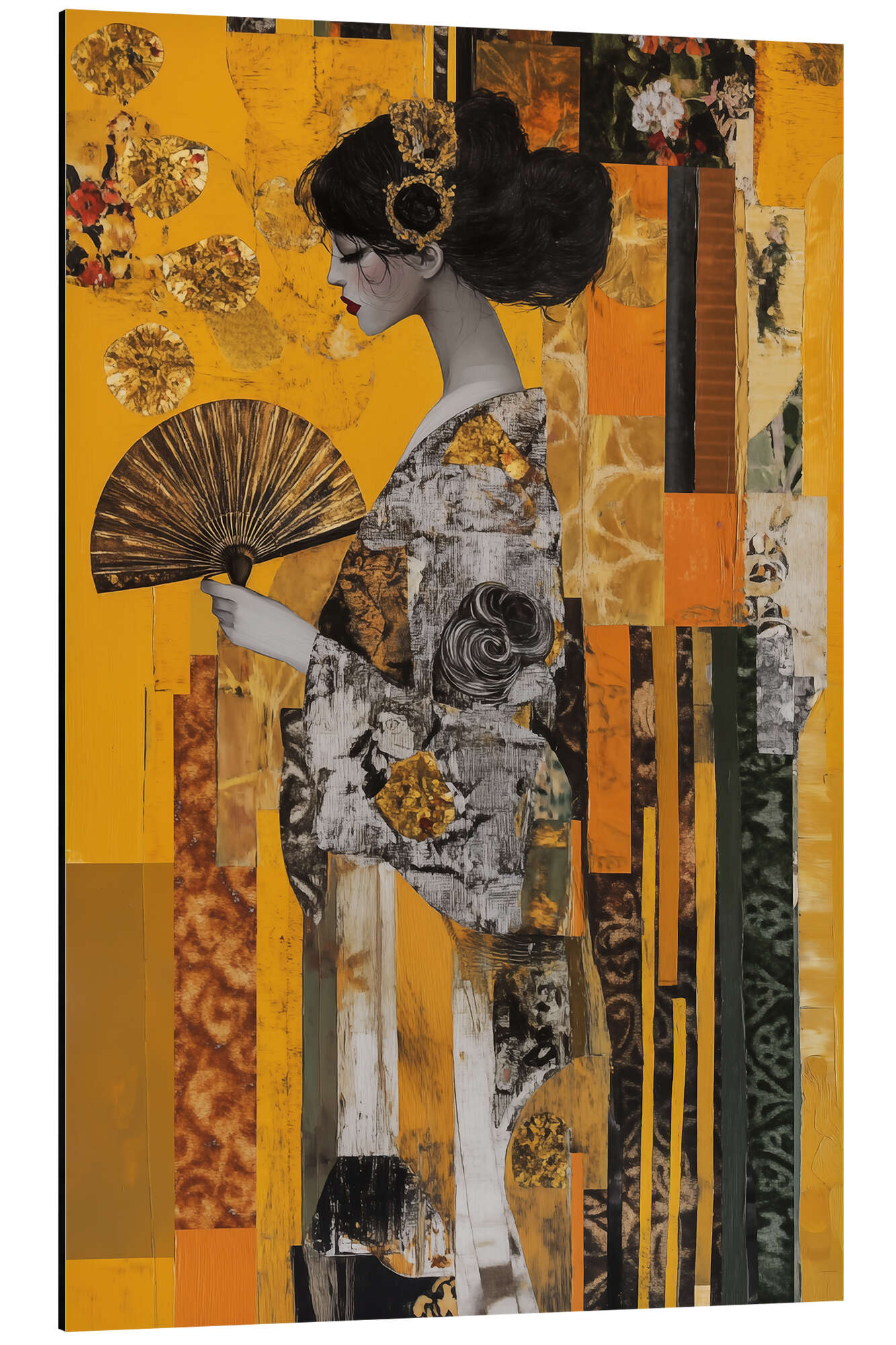 Frau mit Fächer in Gold
