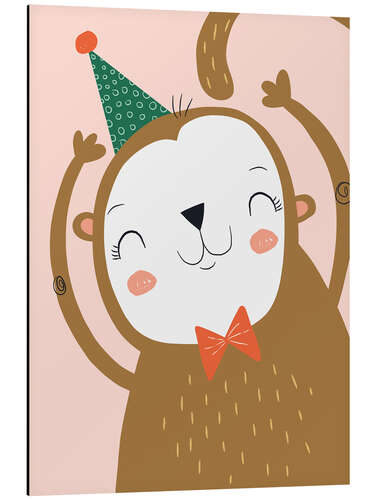Alubild Glücklicher Affe mit Partyhut