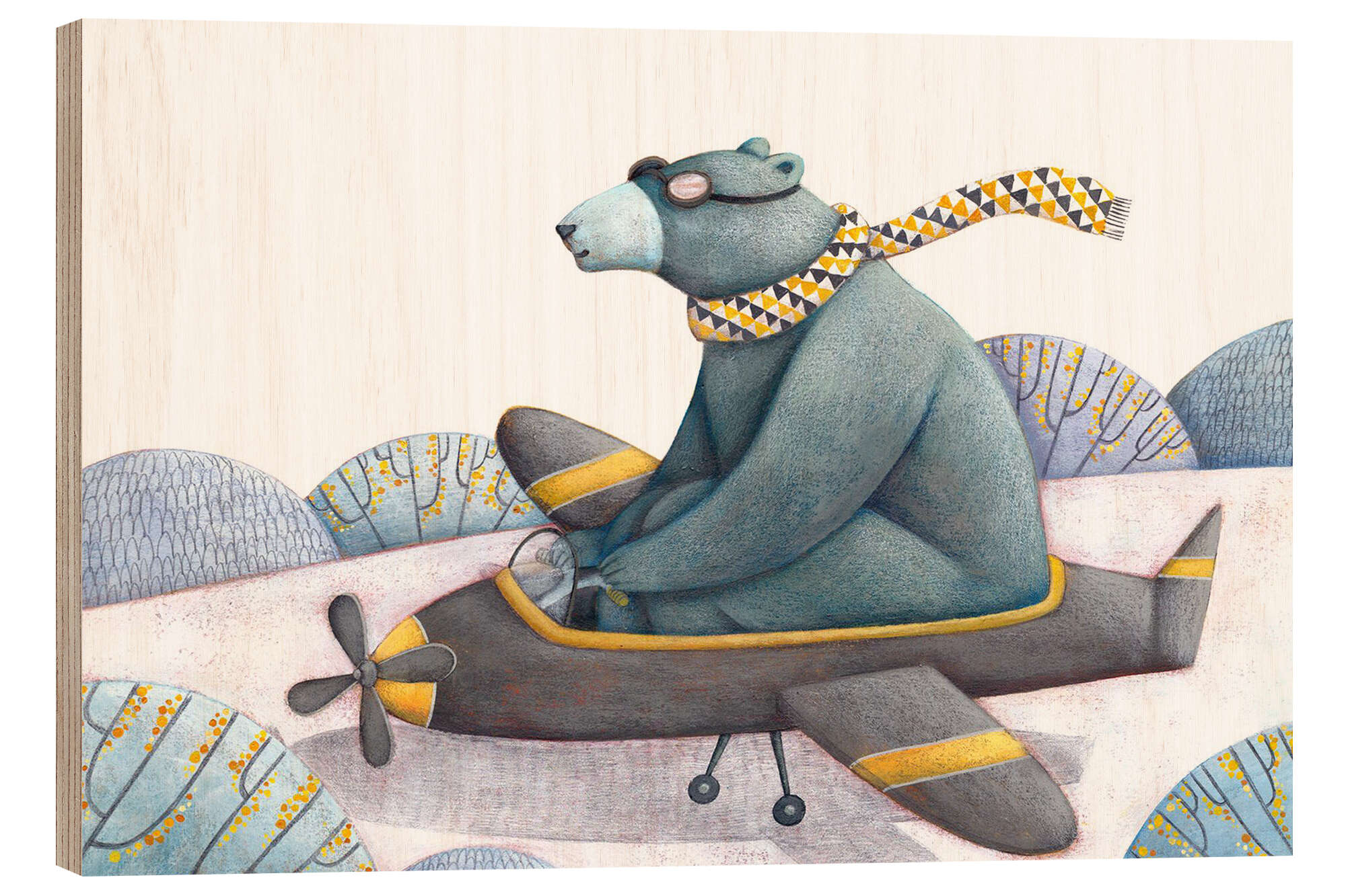 Holzbild Papa Bär fliegt ein Flugzeug