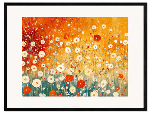 Gerahmter Kunstdruck Rote und weiße Mohnblumen