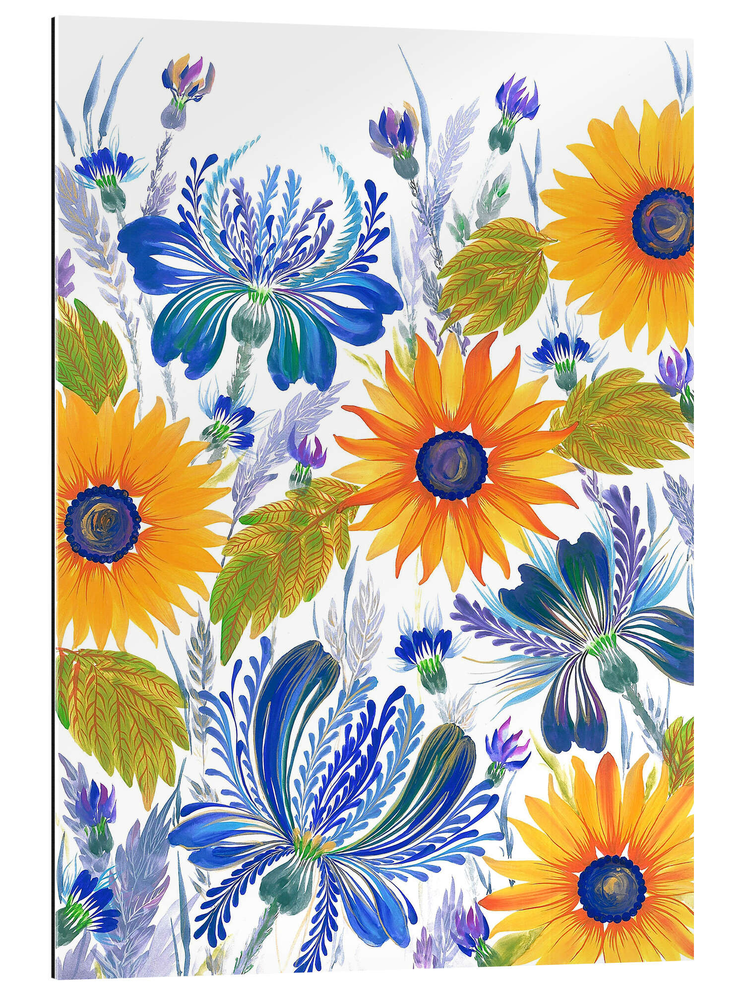 Gallery Print Kornblumen und Sonnenblumen im Petrykivka-Stil