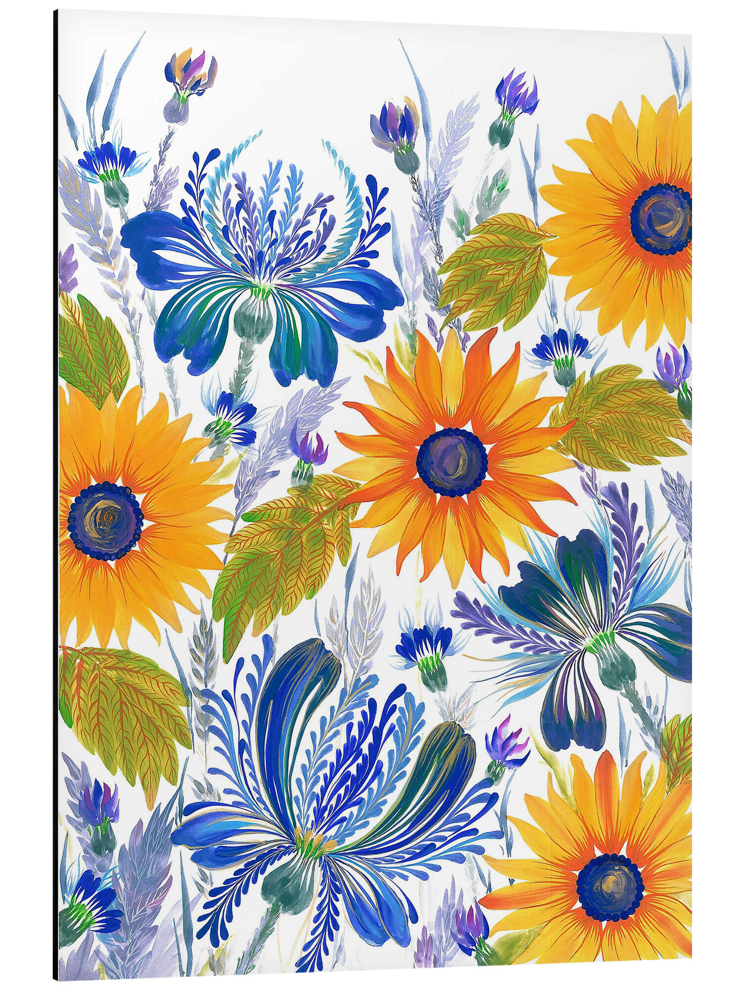 Kornblumen und Sonnenblumen im Petrykivka-Stil