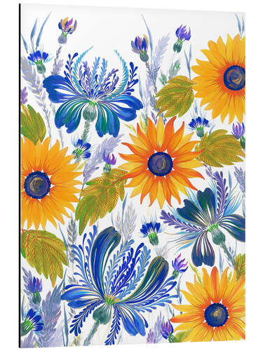 Magnettafel Kornblumen und Sonnenblumen im Petrykivka-Stil