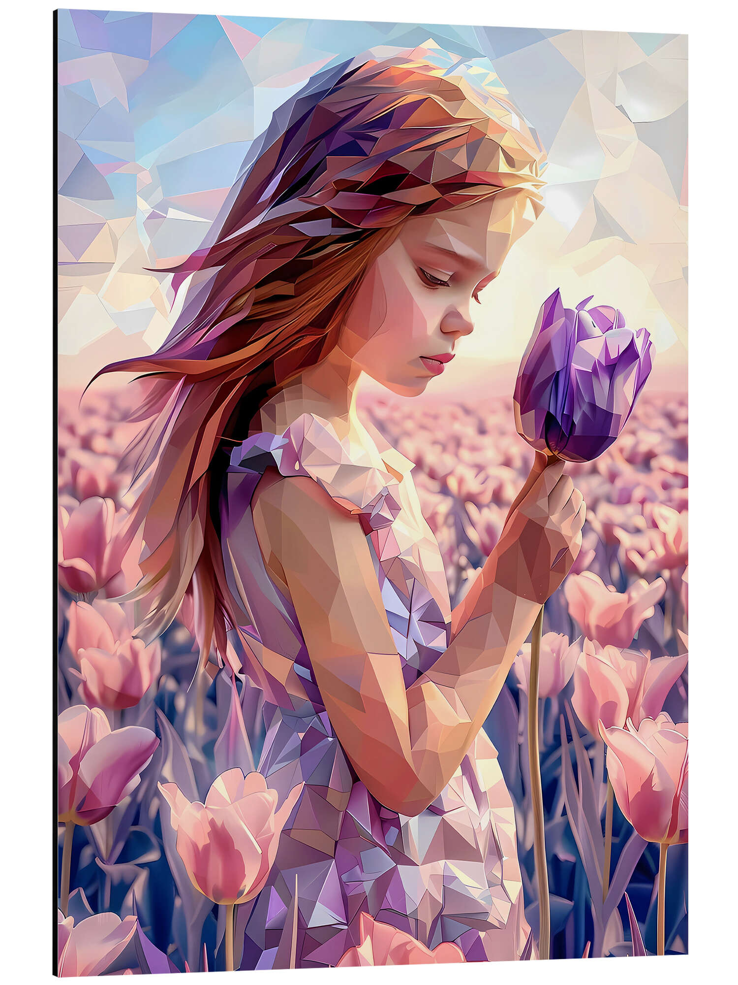 Alubild Mädchen mit lila Tulpe