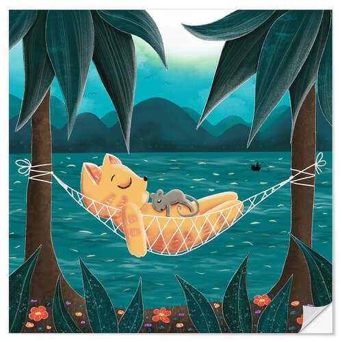 Wandsticker Leo und Susi chillen in der Hängematte