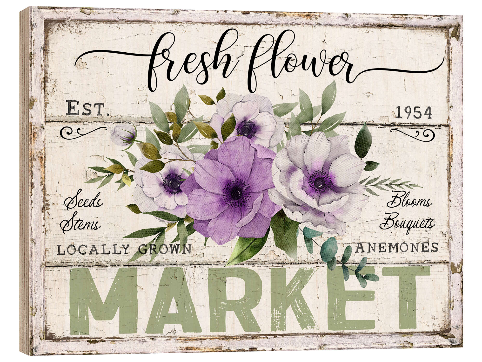 Posterlounge   Wandbilder   Landhausstil   Belle Creatif   Holzbild Fresh Flower Market Anemone