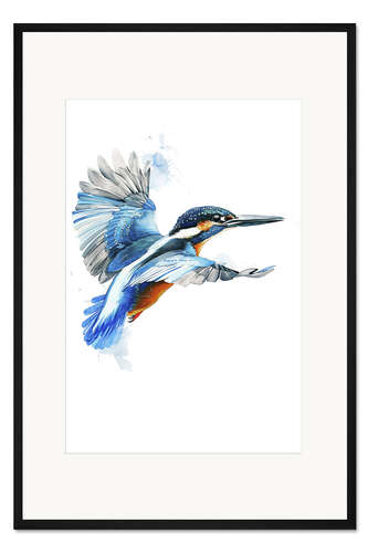 Posterlounge   Wandbilder   Tiere   Vögel   Christian Müringer   Gerahmter Kunstdruck Aquarell Eisvogel im Flug