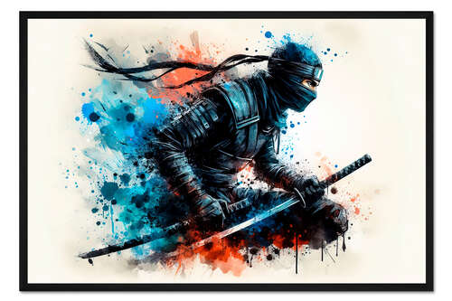 Posterlounge   Wandbilder   Jungenzimmer   nobelart   Gerahmter Kunstdruck Ninja-Krieger in Aquarell I