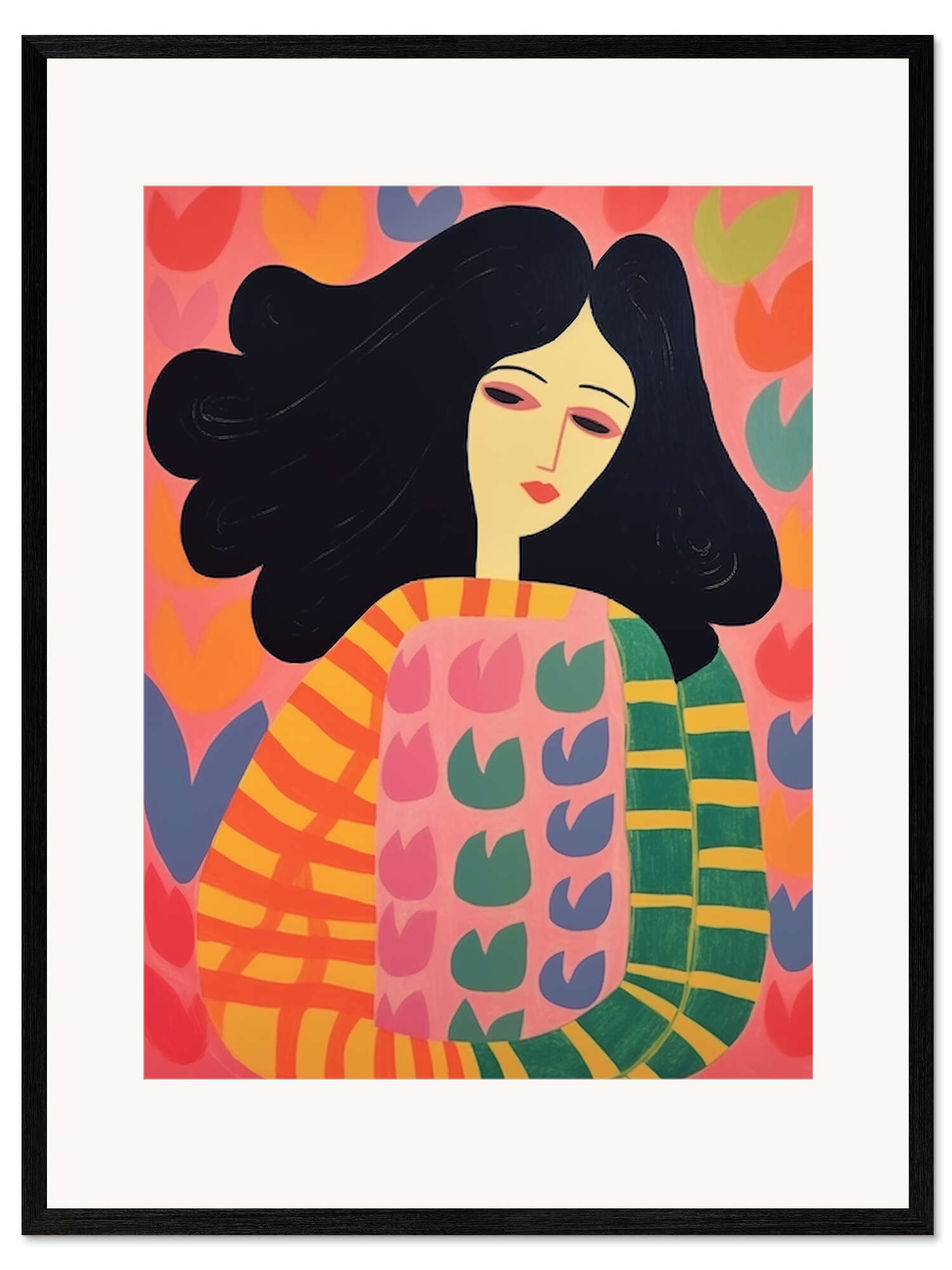 Gerahmter Kunstdruck Blumen-Frau