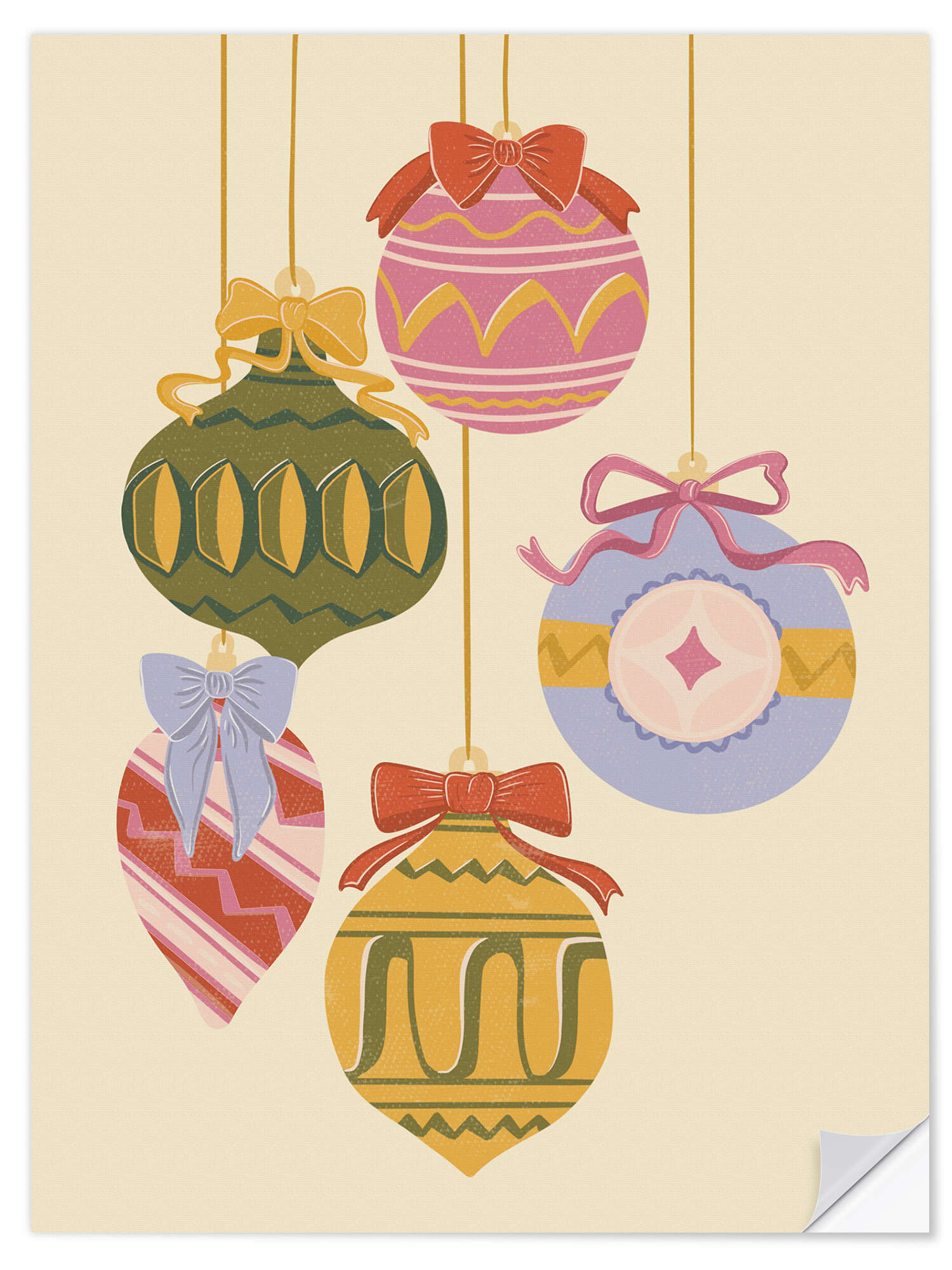 Wandsticker Vintage Weihnachtsschmuck mit Schleifen