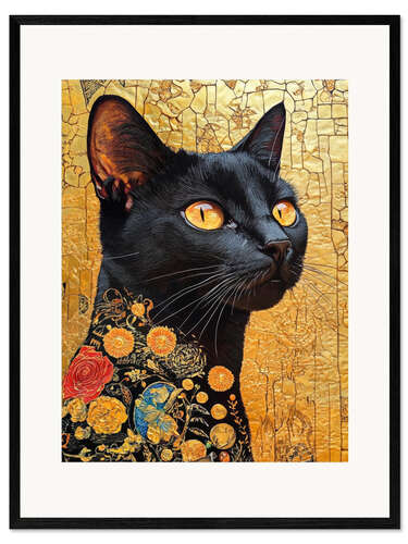Gerahmter Kunstdruck Flüstern der Mitternachtskatze
