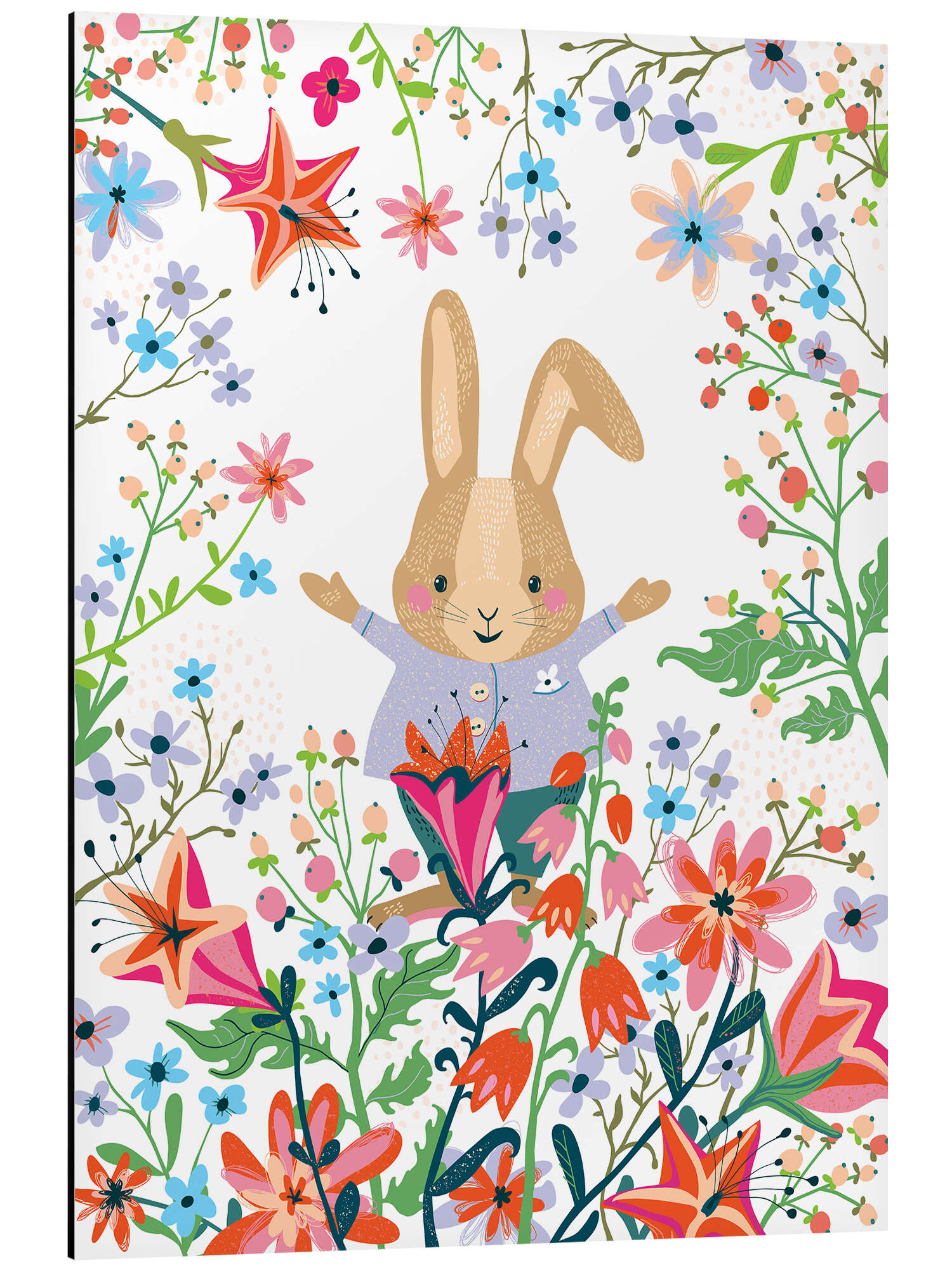 Magnettafel Fröhlicher Hase und Blumen
