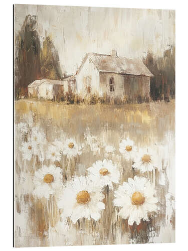 Gallery Print Landhaus mit weißen Gänseblümchen im Hof