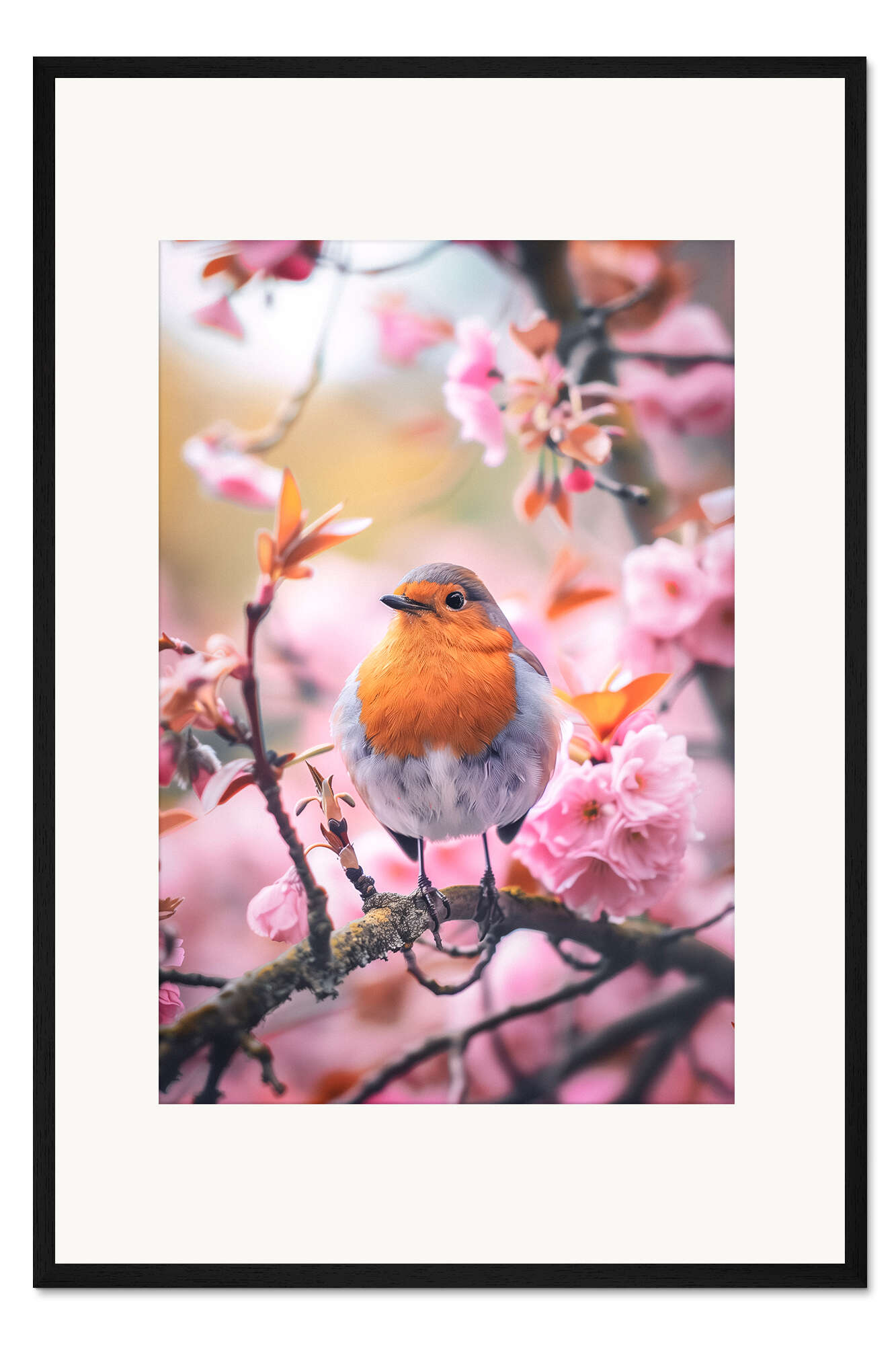 Posterlounge   Wandbilder   Kinderzimmer   Christian Müringer   Gerahmter Kunstdruck Rotkehlchen mit rosa Kirschblüten