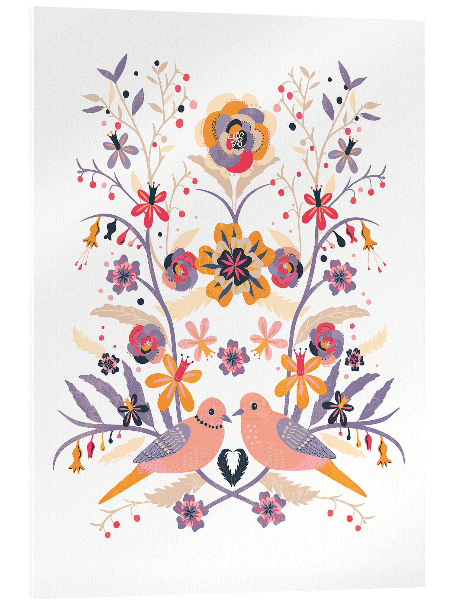 Posterlounge   Wandbilder   Illustration   Verbrugge Watercolor   Acrylglasbild Blumenkomposition im skandinavischen Stil mit Tauben