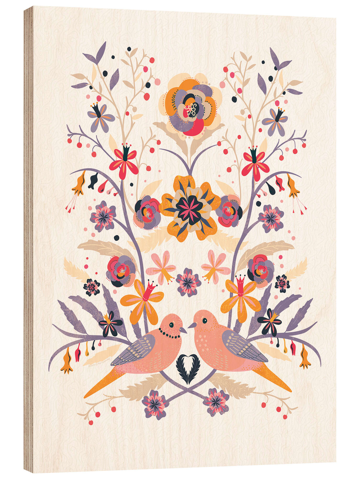 Posterlounge   Wandbilder   Illustration   Verbrugge Watercolor   Holzbild Blumenkomposition im skandinavischen Stil mit Tauben