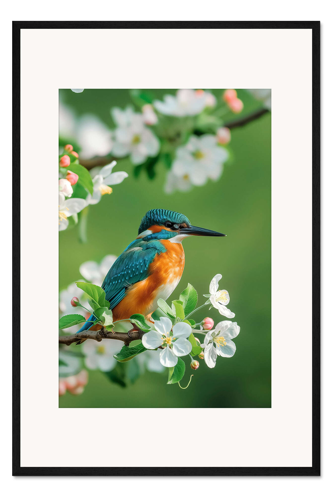 Posterlounge   Wandbilder   Fotografie   Christian Müringer   Gerahmter Kunstdruck Eisvogel mit Kirschblüten