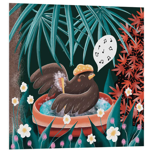 Posterlounge   Wandbilder   Kinderzimmer   WACHtraum   Hartschaumbild Frau Amsel genießt singend ihr Bad