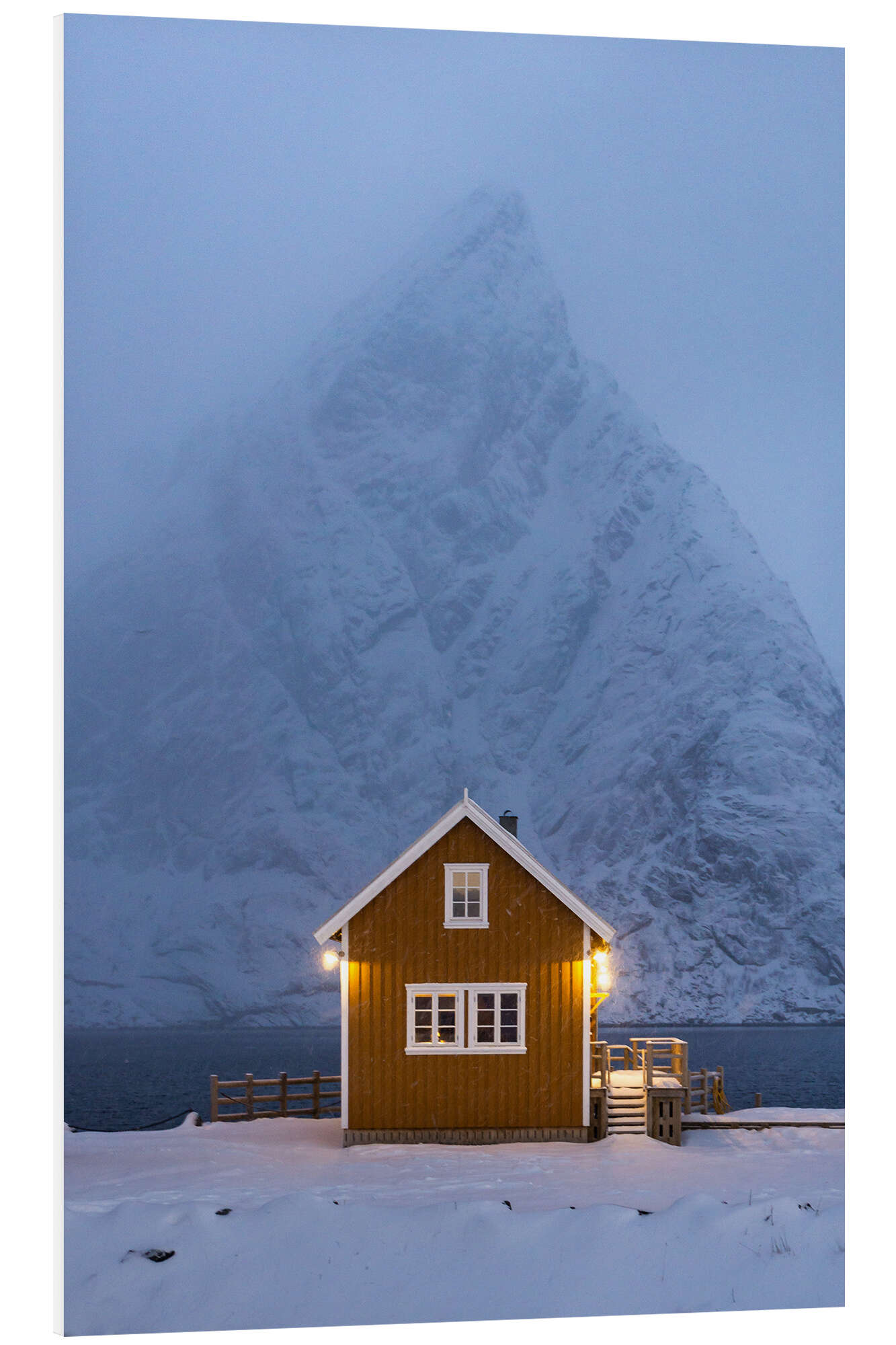 Hartschaumbild Einsame Hütte auf den Lofoten im Winter