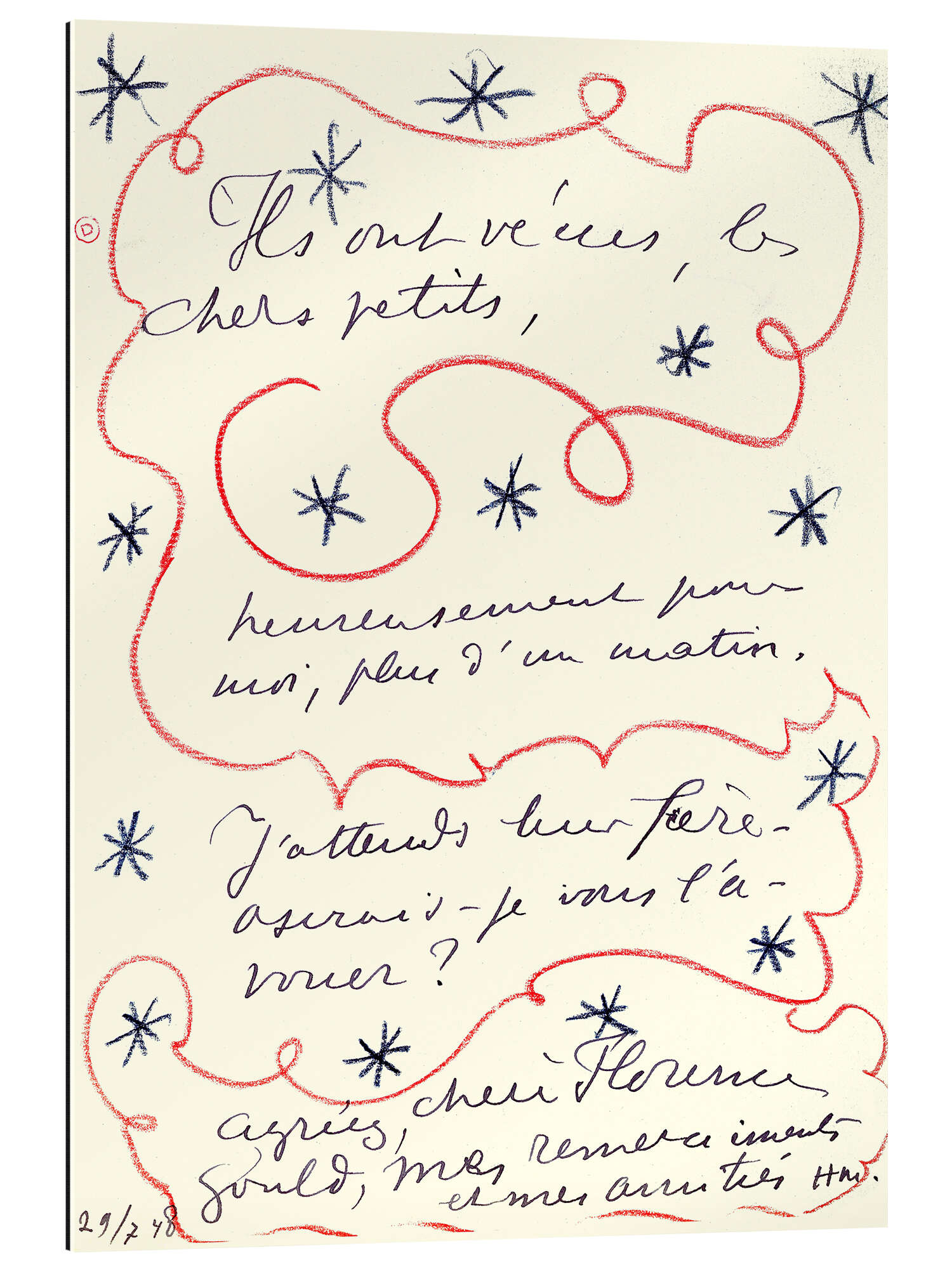 Posterlounge   Wandbilder   Malerei   Fauvismus   Henri Matisse   Gallery Print Brief des Malers an Florence Gould, 29. Juli 1948
