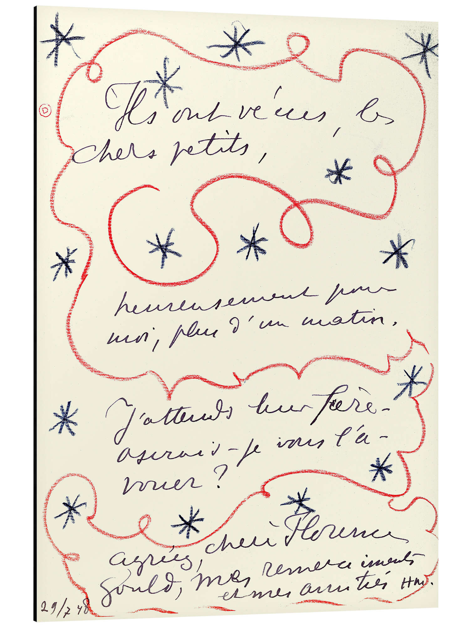 Posterlounge   Wandbilder   Malerei   Fauvismus   Henri Matisse   Magnettafel Brief des Malers an Florence Gould, 29. Juli 1948
