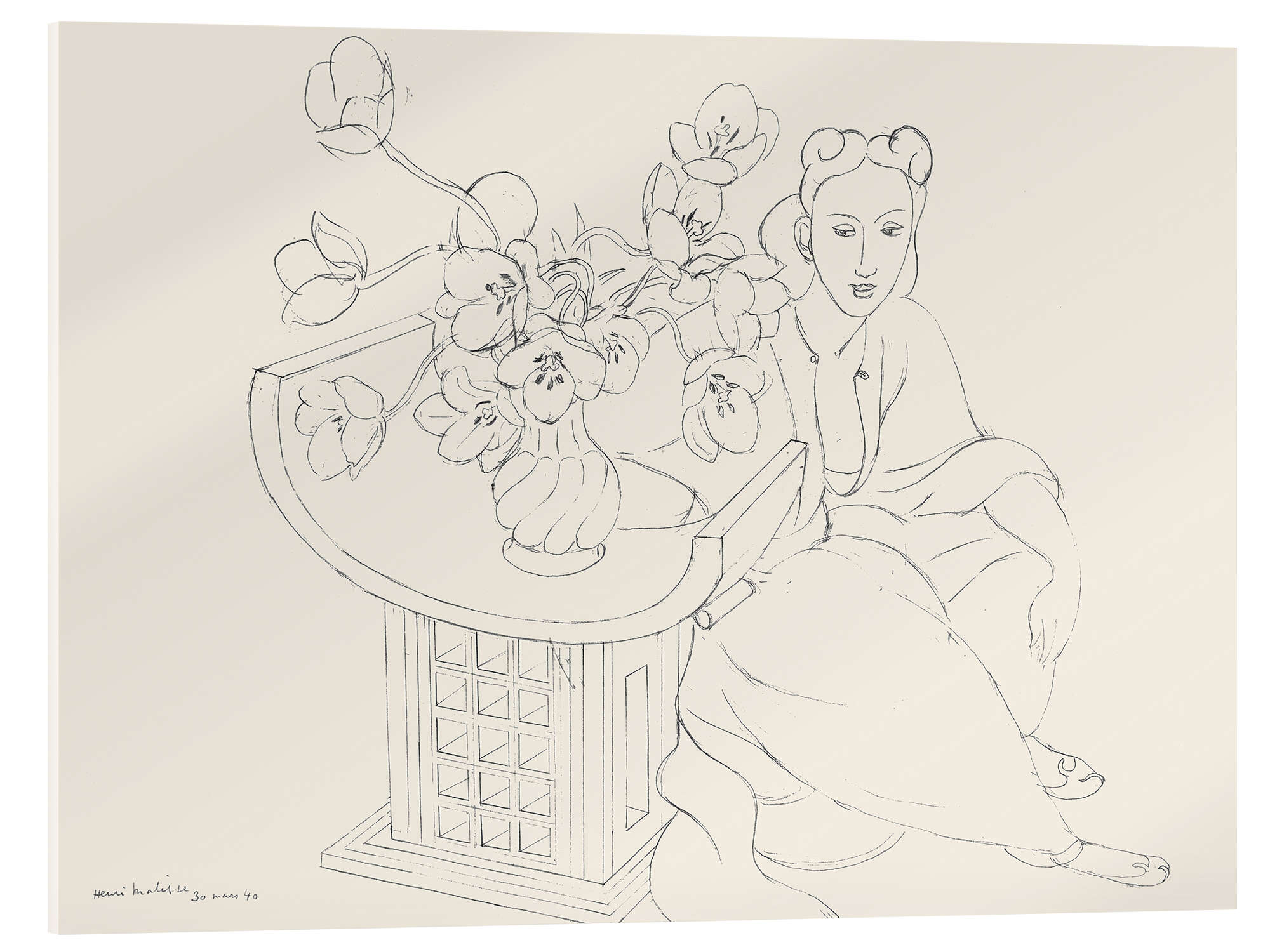 Acrylglasbild Sitzende Frau mit Tulpenvase, 1940