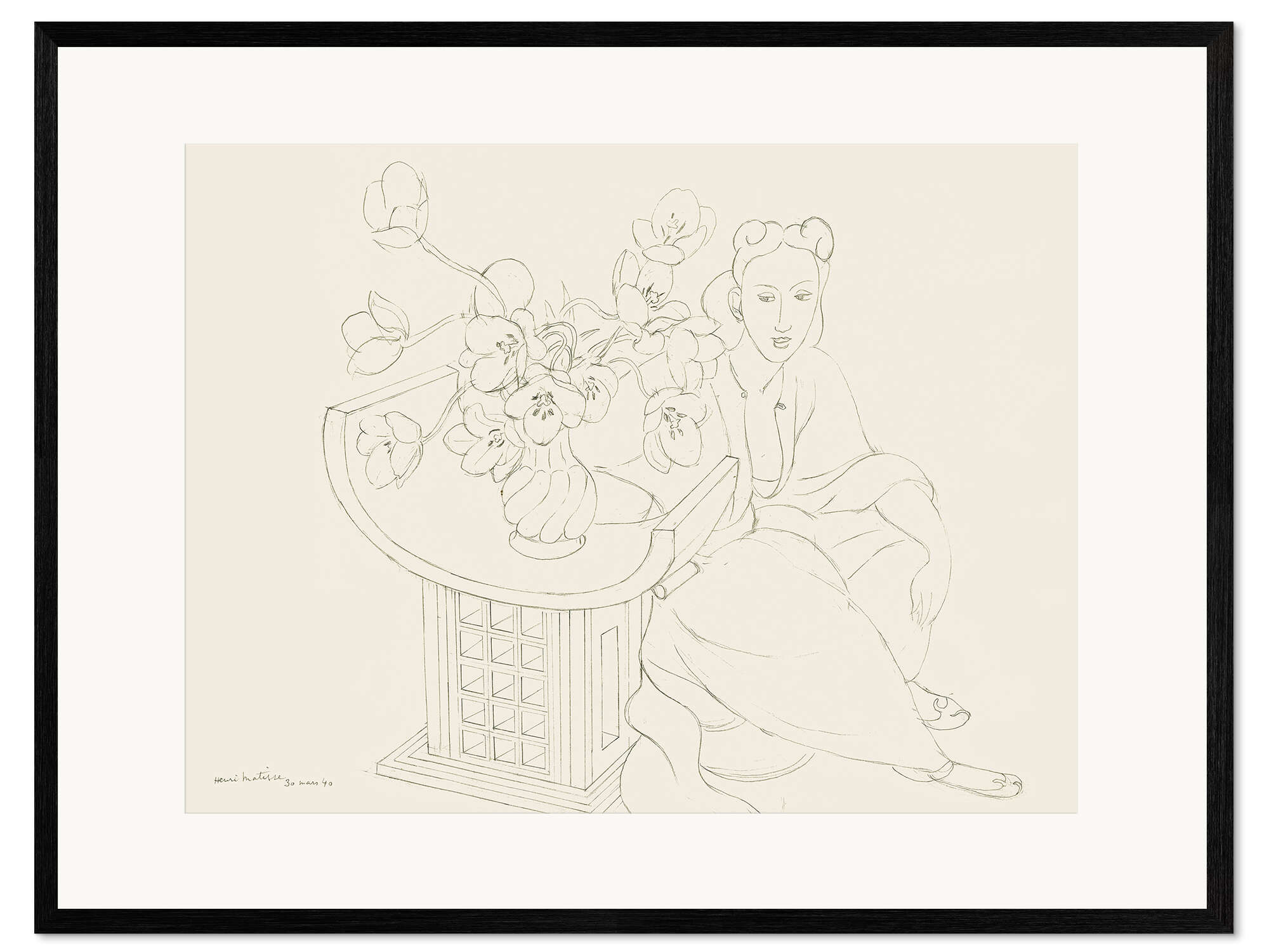 Gerahmter Kunstdruck Sitzende Frau mit Tulpenvase, 1940