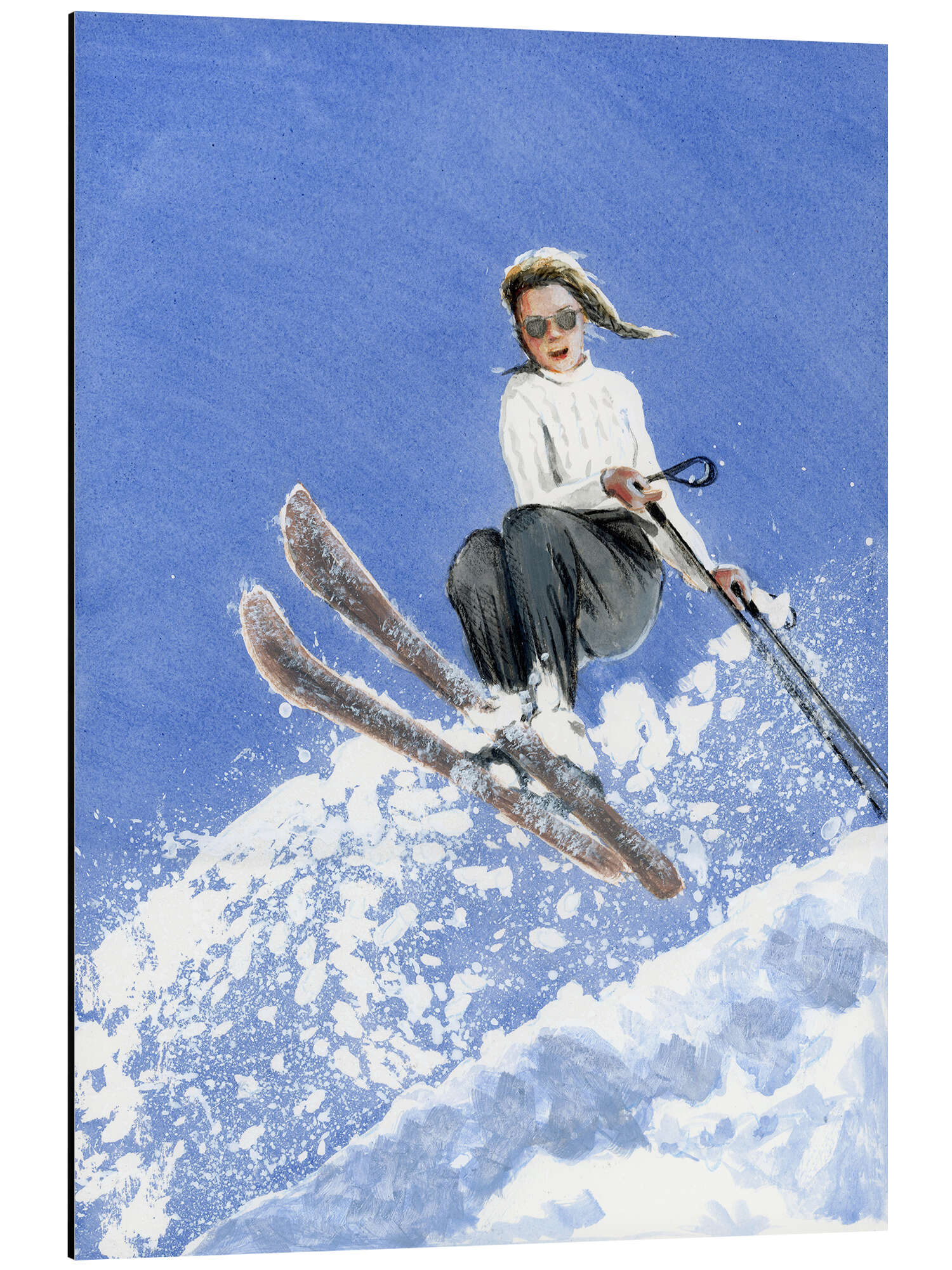 Alubild Skifahrerin mit weißem Pullover