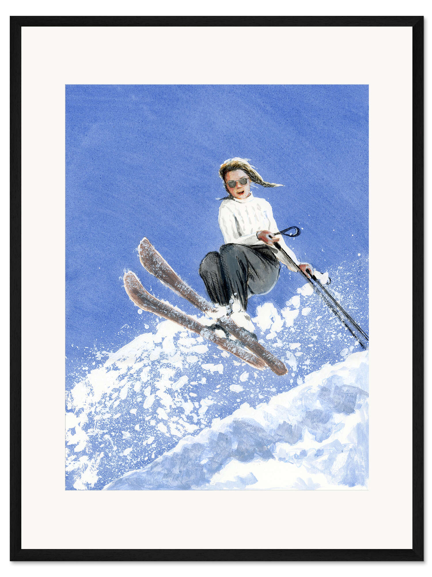 Posterlounge   Wandbilder   Blau   Sarah Morrissette   Gerahmter Kunstdruck Skifahrerin mit weißem Pullover
