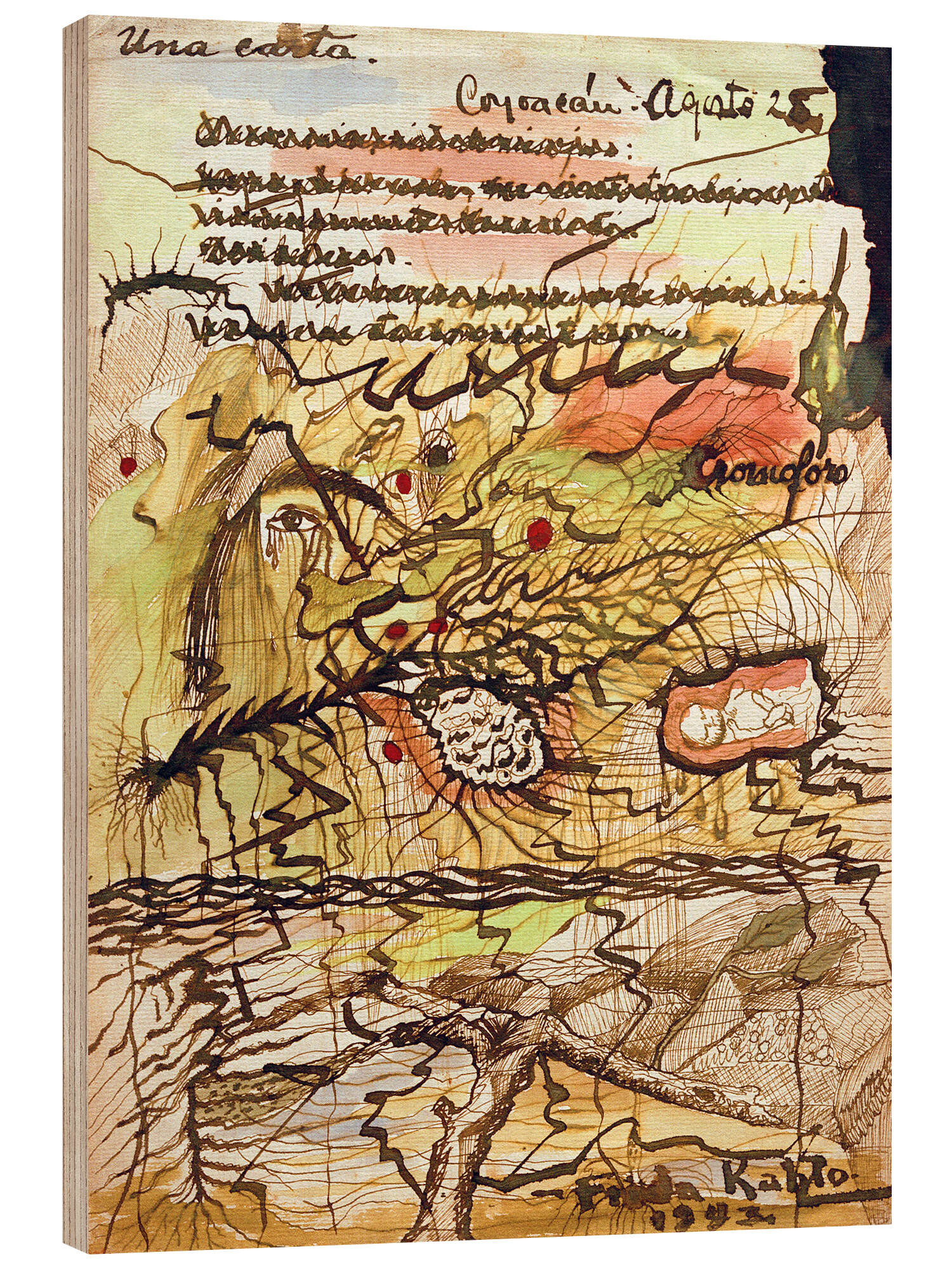 Posterlounge   Wandbilder   Malerei   Aquarell Malerei   Frida Kahlo   Holzbild Ein Brief, 1943