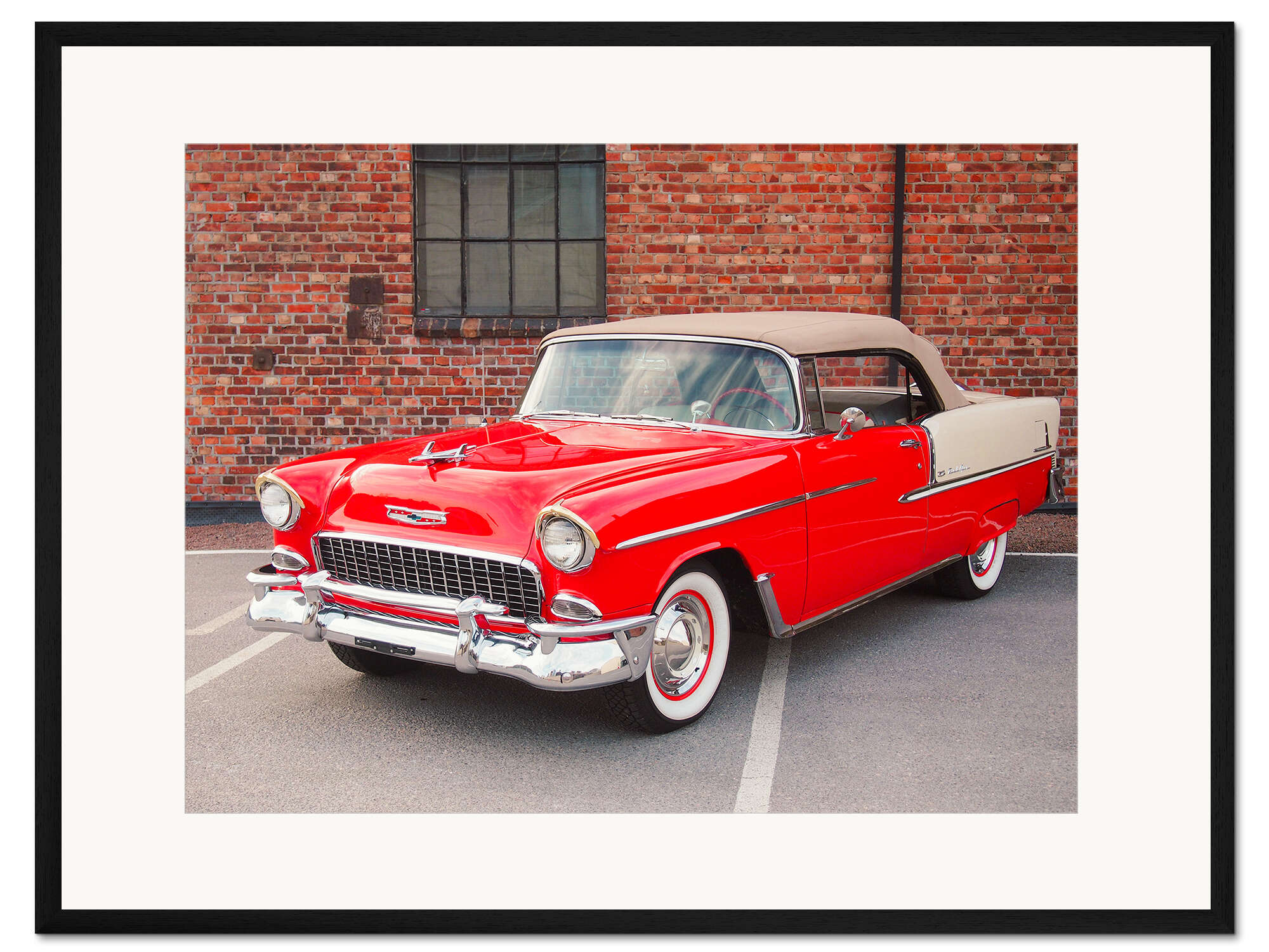 Posterlounge   Wandbilder   Fahrzeuge   Oldtimer   American Cars 1920 - 2020   Gerahmter Kunstdruck 1955 Chevrolet Bel Air Convertible II