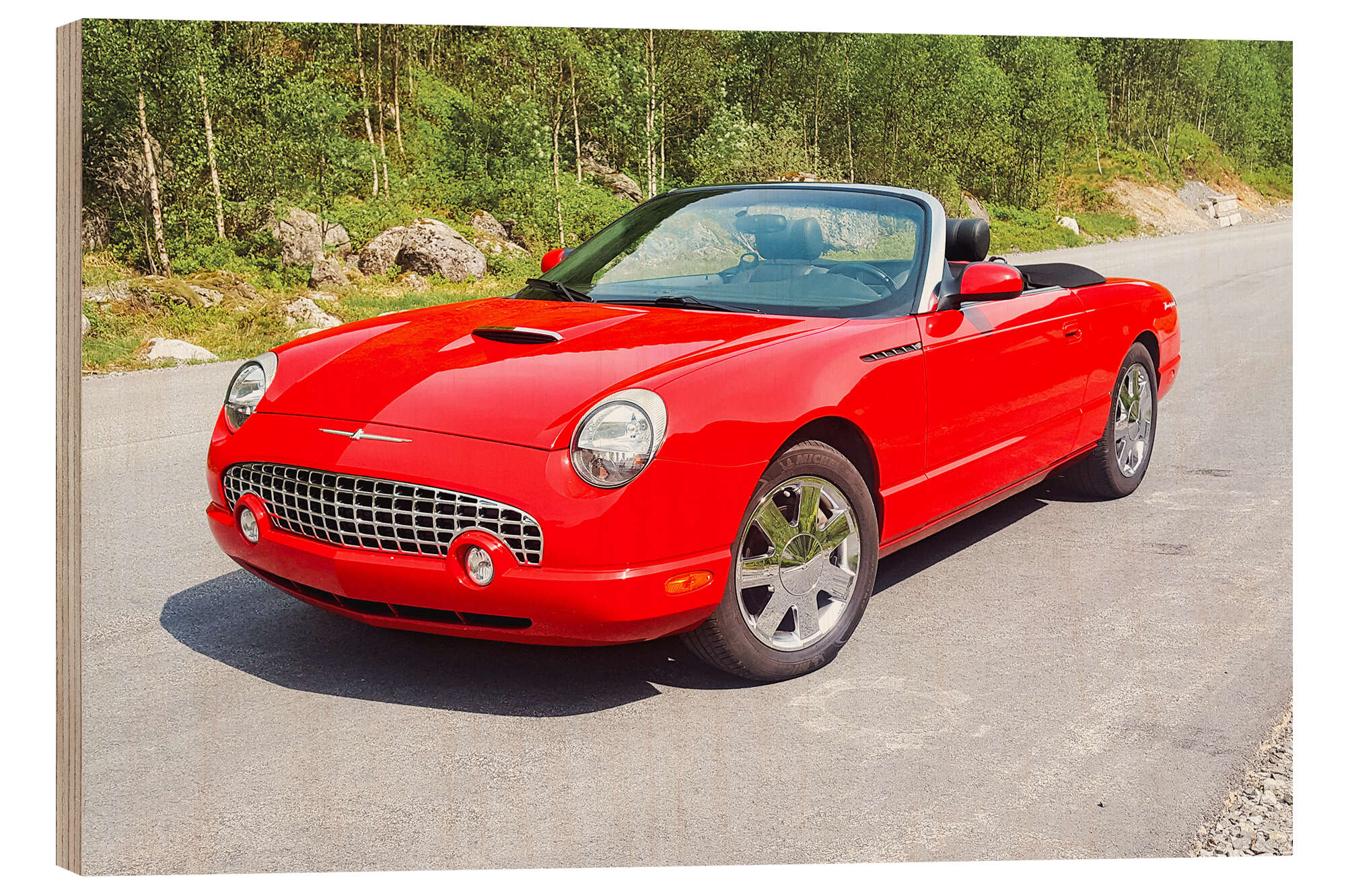 Posterlounge   Wandbilder   Fahrzeuge   Oldtimer   American Cars 1920 - 2020   Holzbild 2002 Ford Thunderbird Convertible I