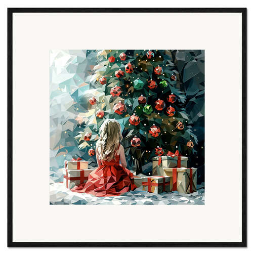 Posterlounge   Wandbilder   Kinderzimmer   Maria Tuzhilkina   Gerahmter Kunstdruck Engel und Weihnachtsbaum