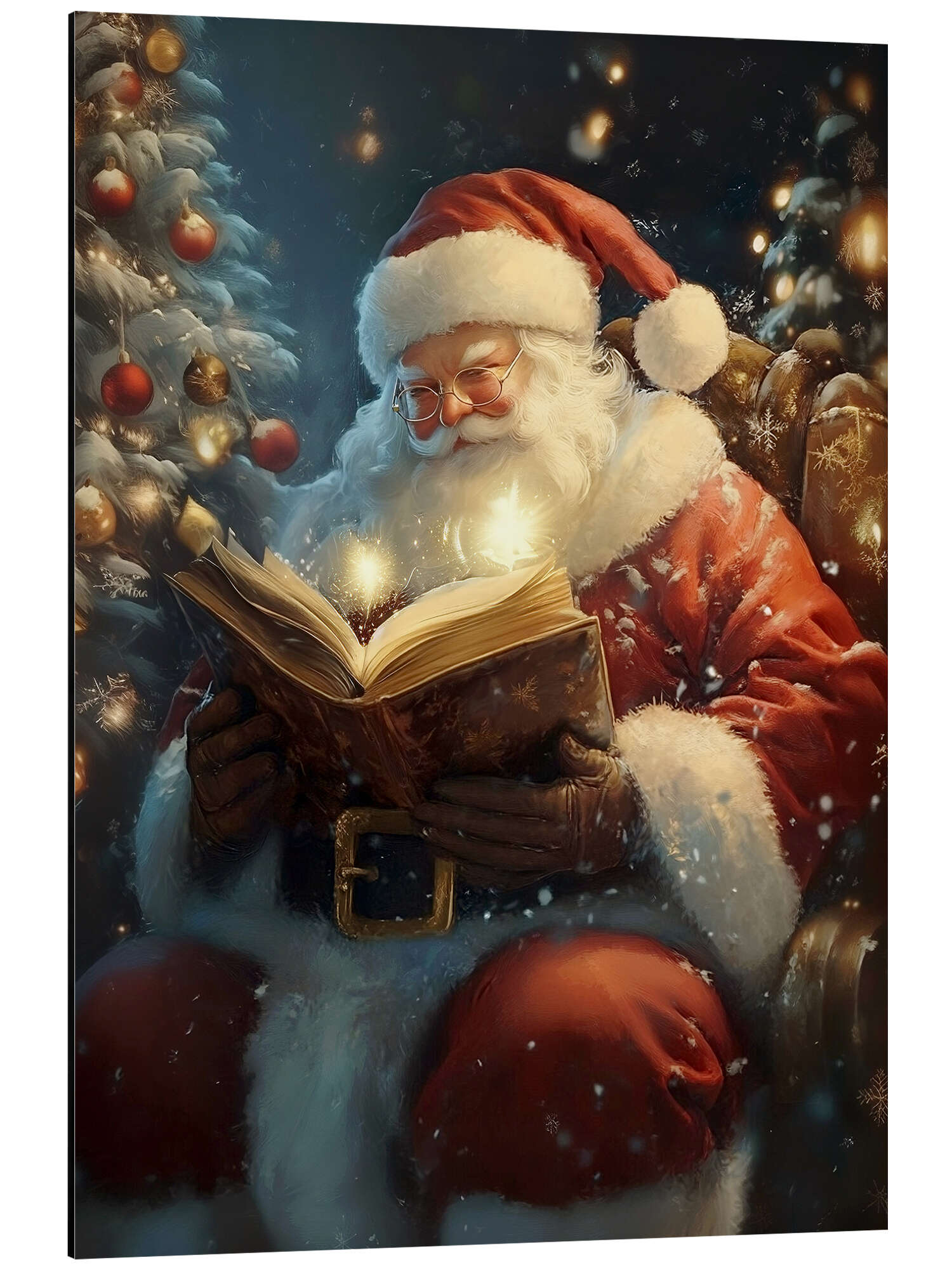 Posterlounge   Wandbilder   Geschenkideen   Weihnachten   TAlex   Magnettafel Vintage Weihnachtsmann mit Buch und Weihnachtsbaum