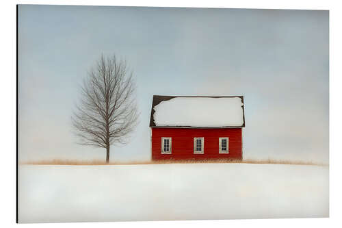 Magnettafel Rotes Haus im Schnee
