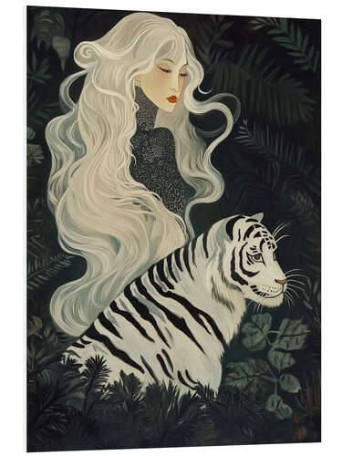 Hartschaumbild Weiße Japandi Tiger Frau