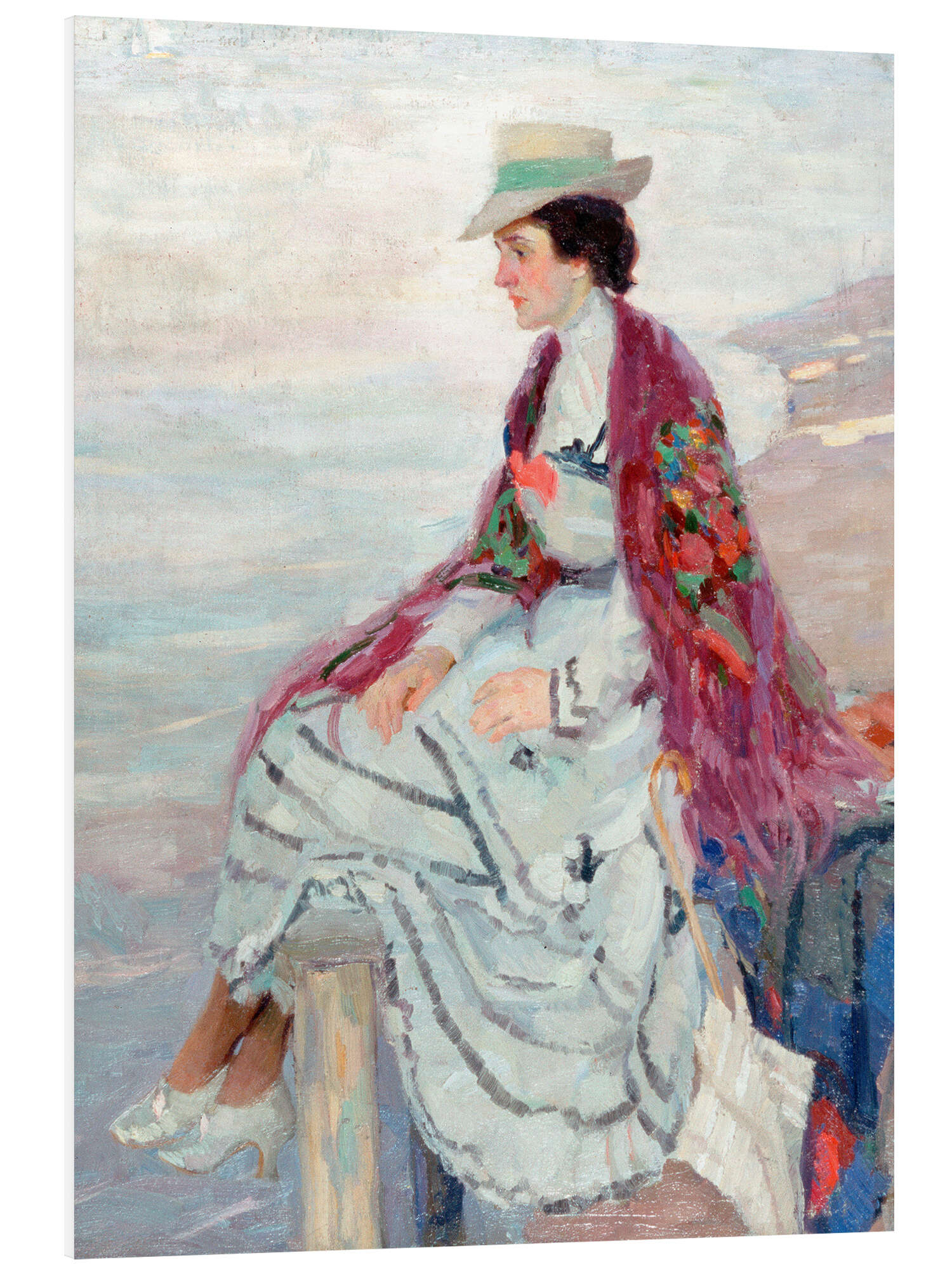 Hartschaumbild Dame am Steg