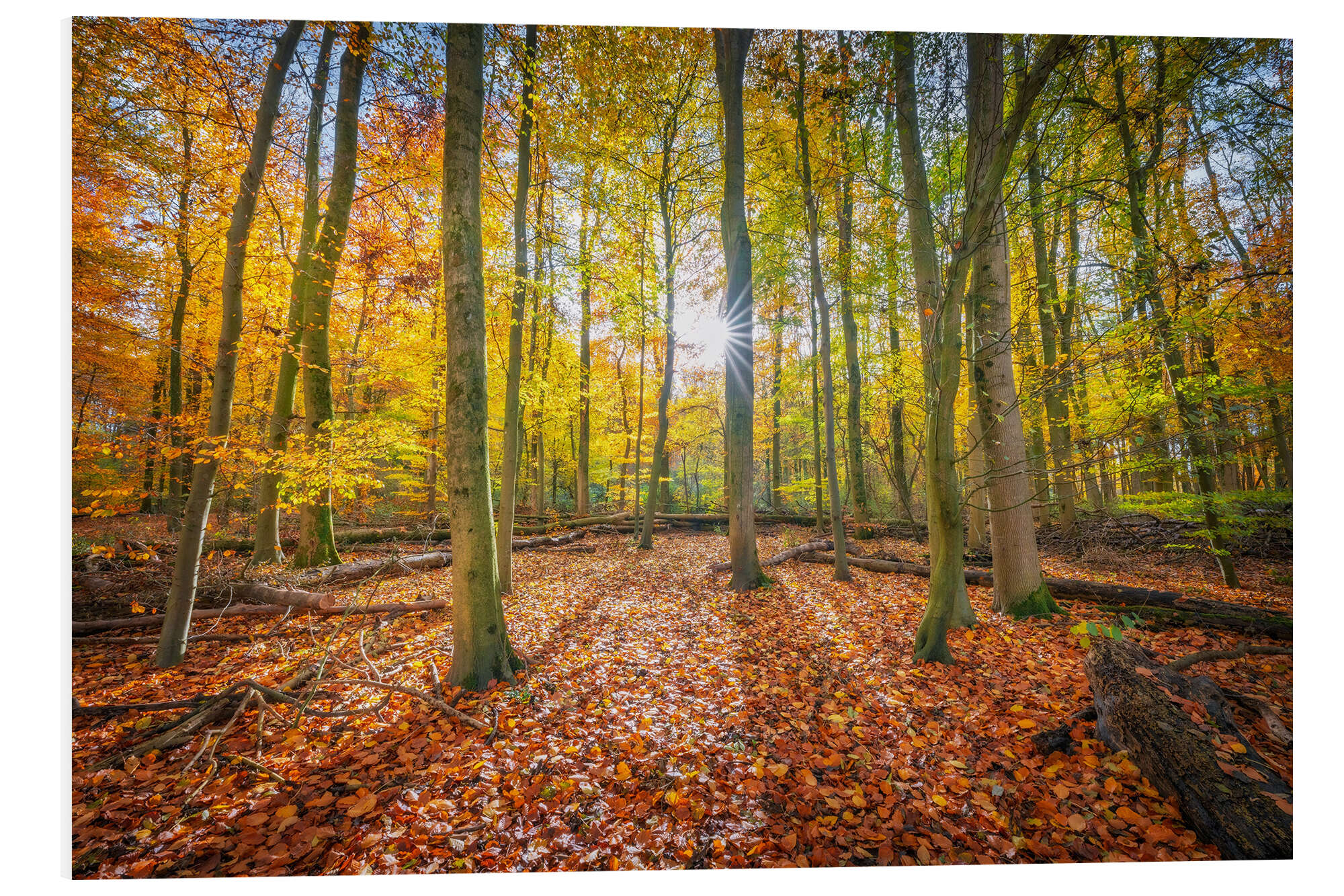Hartschaumbild Sonnenlicht im Herbstwald