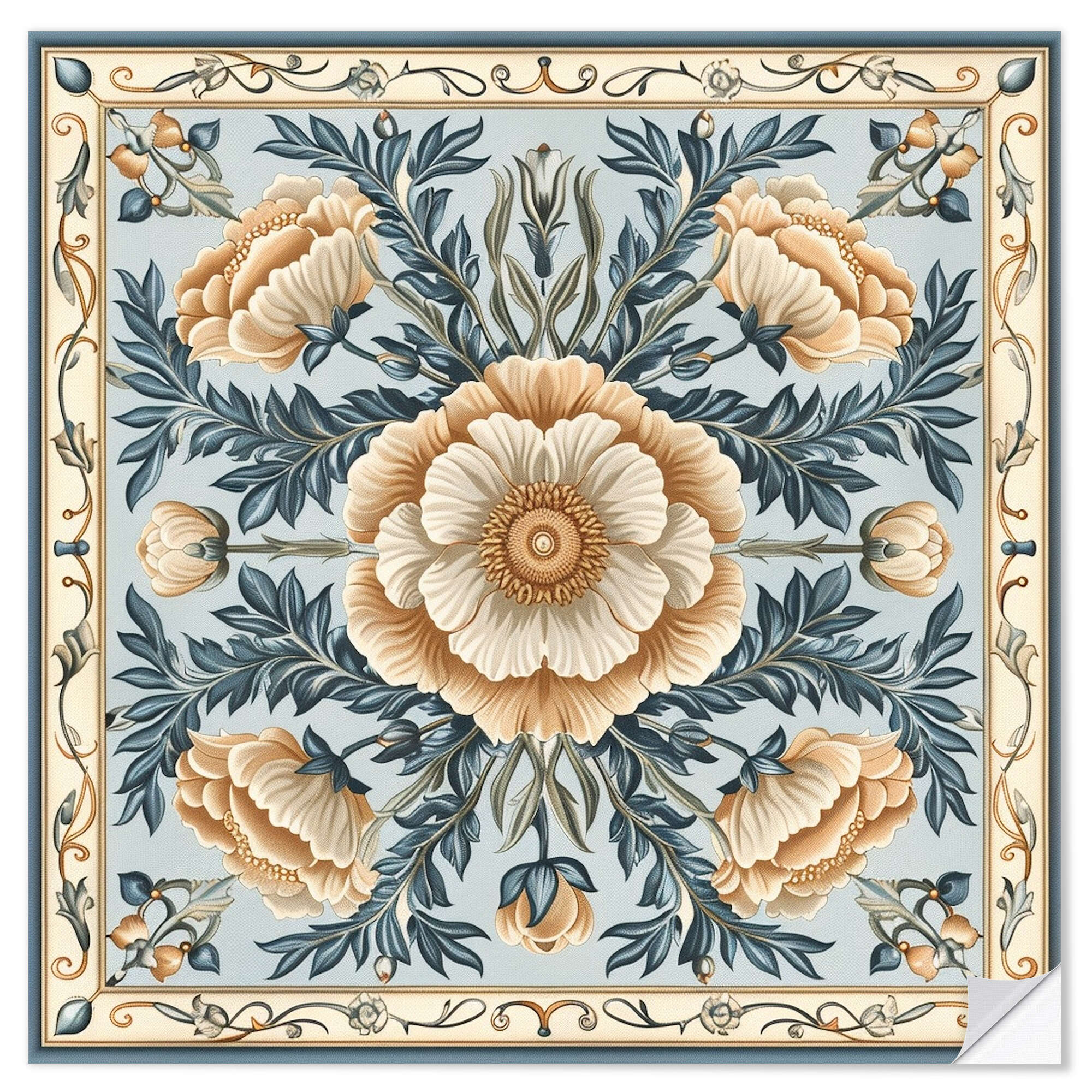 Posterlounge   Wandbilder   Blumen   Maria Tuzhilkina   Wandsticker Beige Blumen auf Blauem Hintergrund