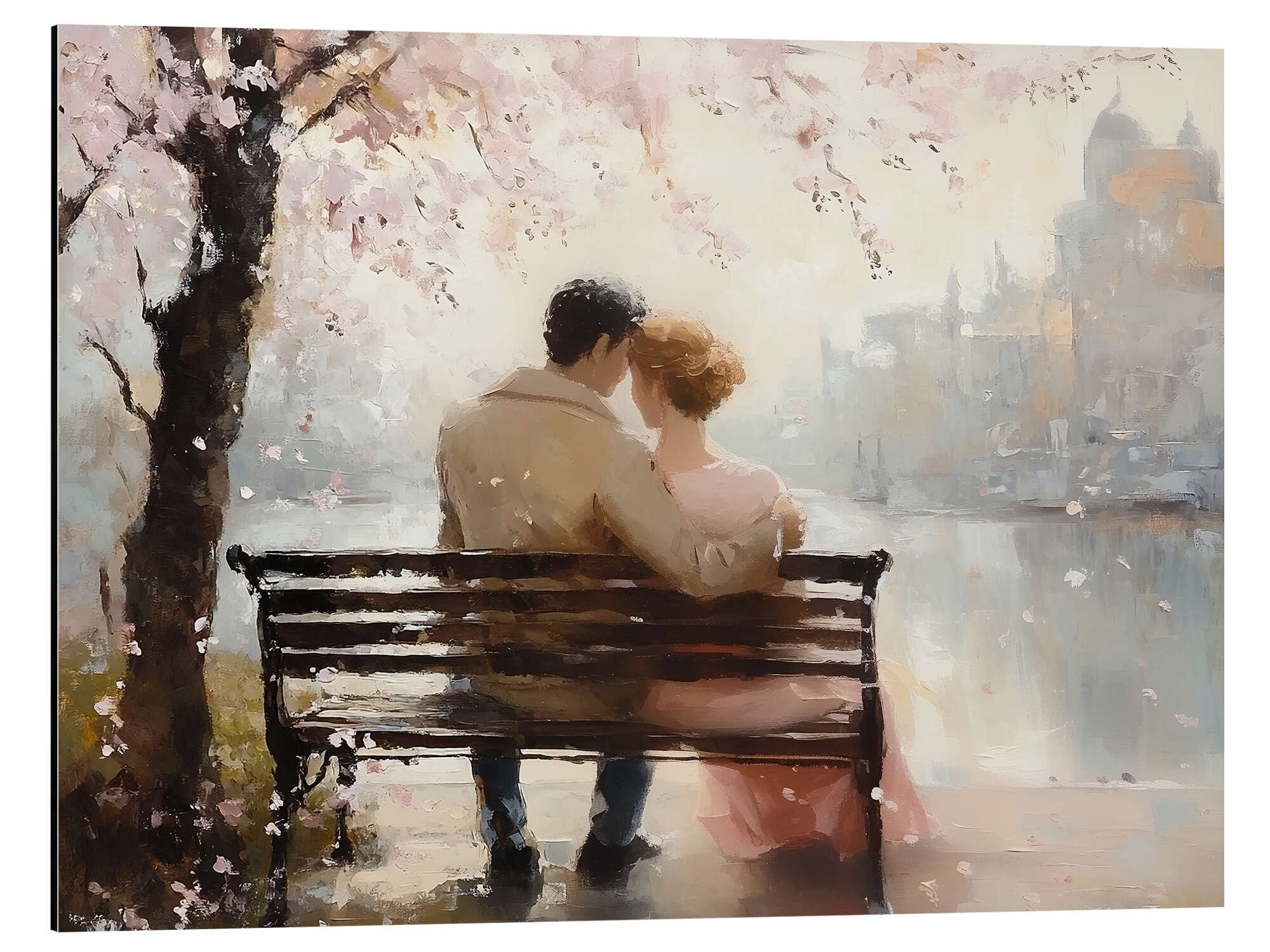Magnettafel Romantisches Paar unter Kirschblütenbaum
