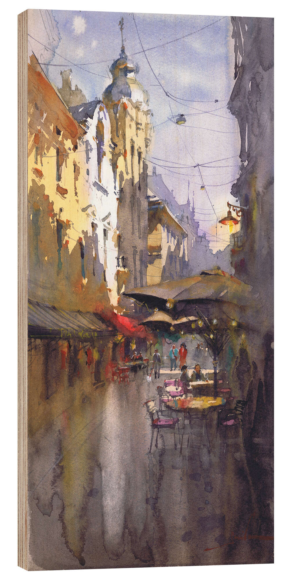 Posterlounge   Wandbilder   Malerei   Aquarell Malerei   Samira Yanushkova   Holzbild Quiet Street with Cafés