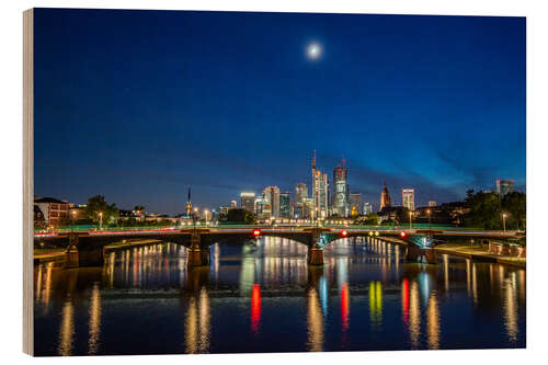 Holzbild Frankfurt am Main, Skyline bei Nacht