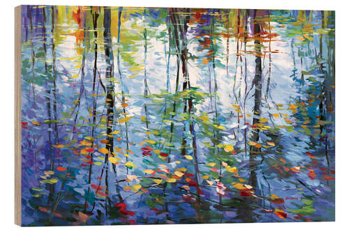 Posterlounge   Wandbilder   Botanik   Bäume   Leon Devenice   Holzbild Impressionistische Spiegelung von Herbstbäumen auf Wasser