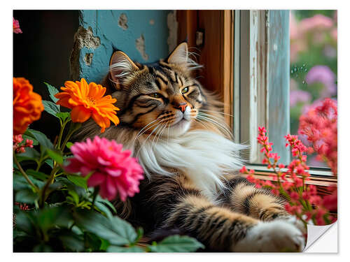 Wandsticker Maine Coon Katze am Fenster