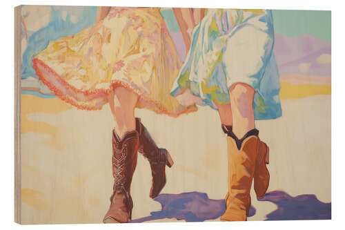 Posterlounge   Wandbilder   Illustration   Melloi Art   Holzbild Cowgirl-Spaziergang