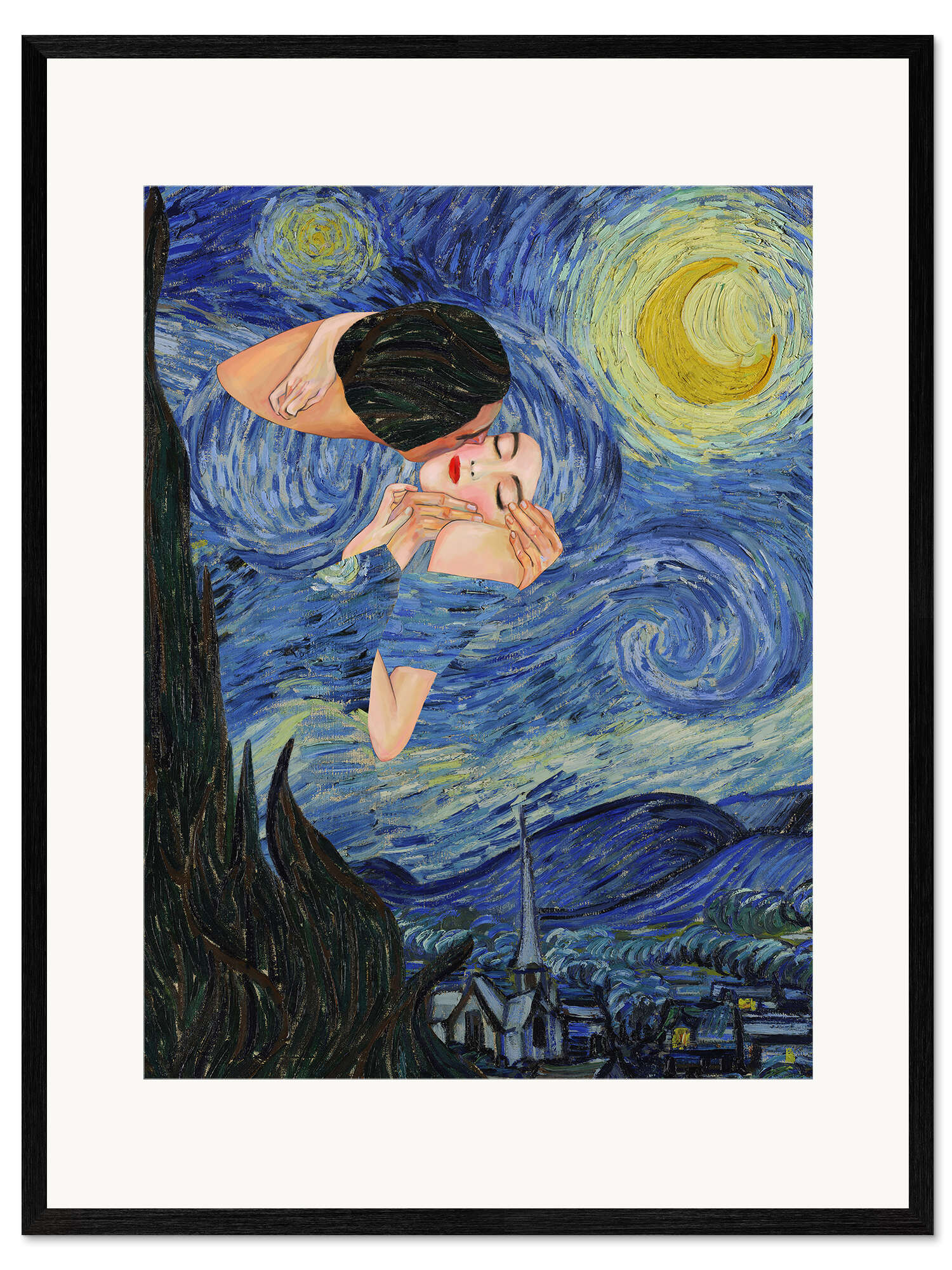 Gerahmter Kunstdruck Kuss unter der Sternennacht
