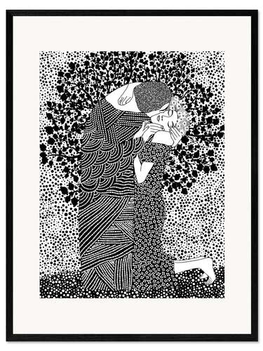 Posterlounge   Wandbilder   Illustration   Zeichnung & Skizze   CatsAndDotz   Gerahmter Kunstdruck Der Kuss, Schwarz-Weiß